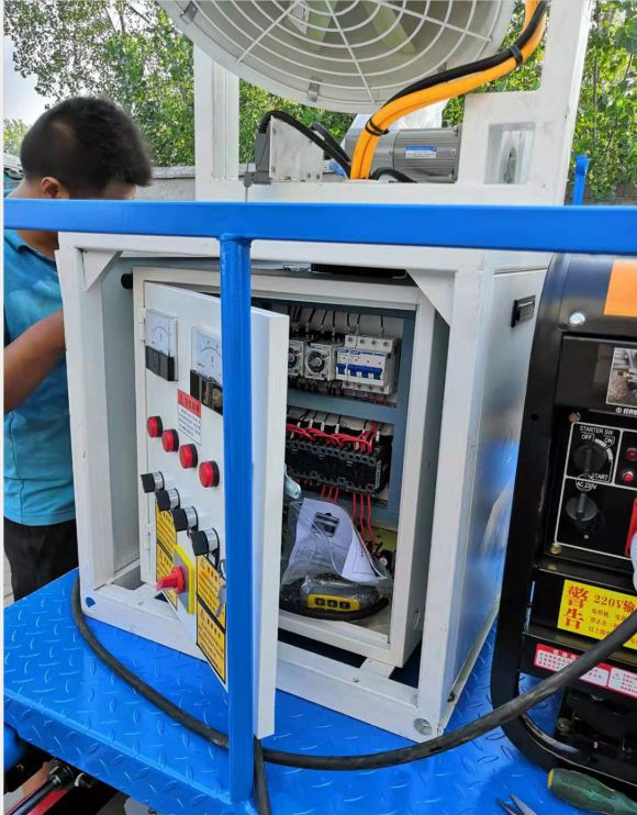 噴霧抑塵車隨車裝配大功率柴油機、三相交流同步發電機、三相異步電動機、三缸活塞泵,并安裝風機風炮,為農藥噴灑提供專一動力來源和專用設備。灑水泵可抽水排水,安裝濾網,帶消防接口,可通過消防栓進水,帶自流閥,隨車選裝20米噴藥綠化卷盤